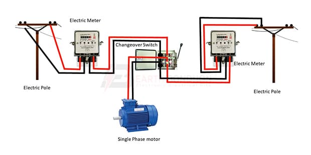 This diagram shows how to make Motor Connected to 2-Meters. Changeover Switch Connection. In this circuit, we use two electric single-phase energy meters, a changeover switch, and a single-phase motor. Here connect all components with power. This circuit is ready for use. If you want to know more about this circuit please stay with check our youtube video below the post.